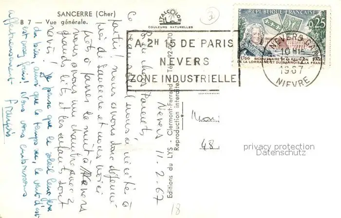 Sancerre Vue générale Sancerre postalisch gelaufen 1967 Erhaltung siehe scans [FriedD77] Frierer