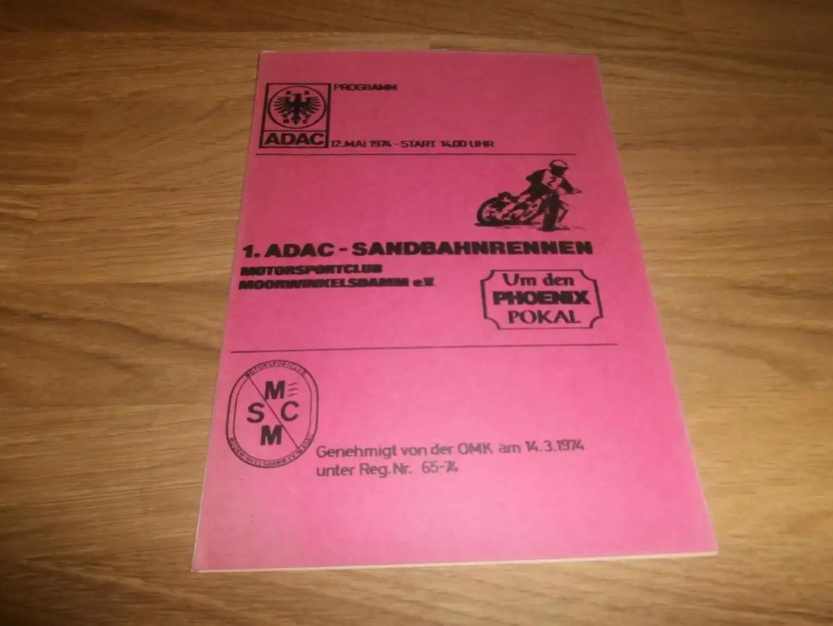 Sandbahn Moorwinkelsdamm 12.05.1974 , Sandbahnrennen , Programmheft / Programm / Rennprogramm , program !!!