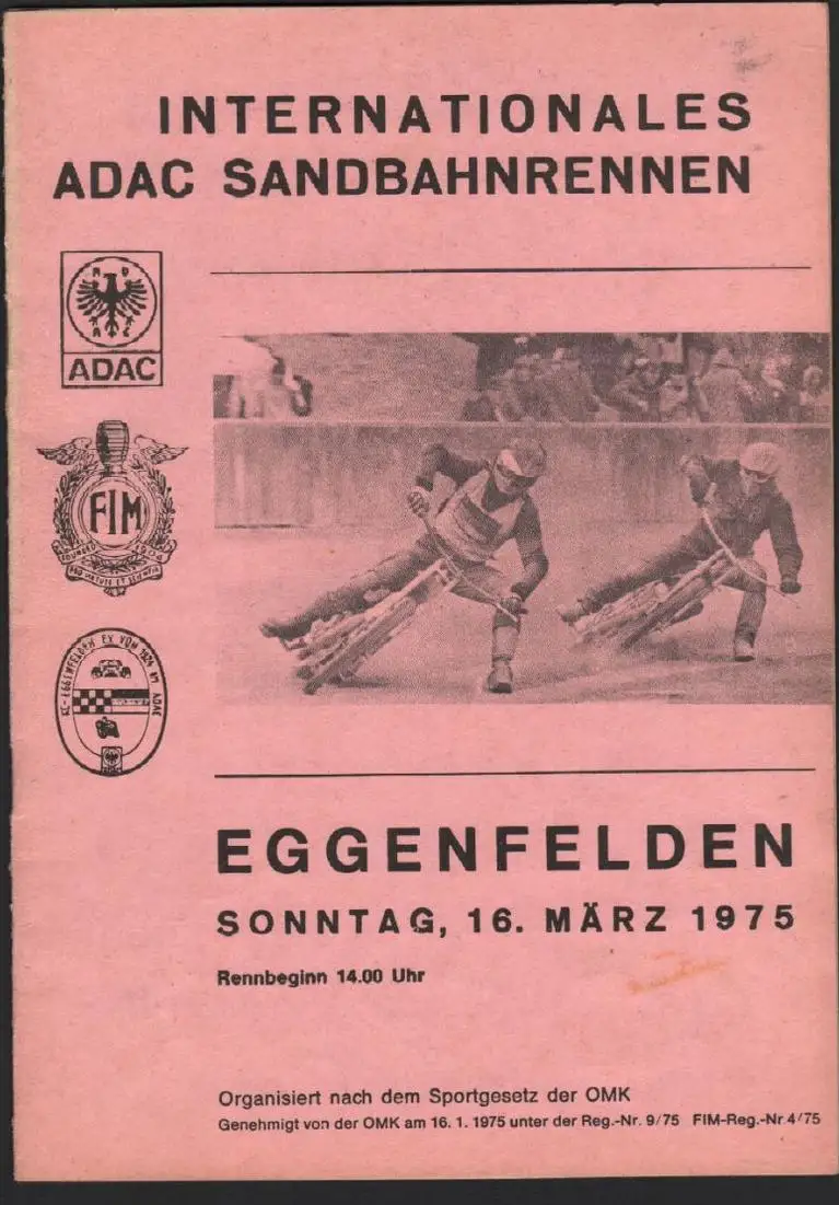 Sandbahnrennen Eggenfelden 16.03.1975 , Speedway , Programmheft / Programm / Rennprogramm !!!