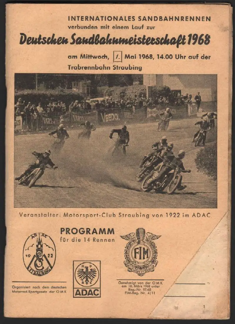 Sandbahnrennen Straubing 1968 , Speedway , Programmheft / Programm / Rennprogramm !!! OR-!