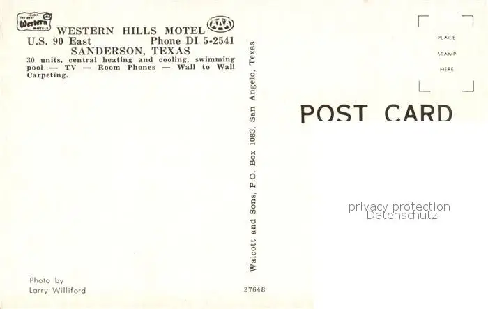 Sanderson_Texas Western Hills Motel Sanderson Texas postalisch nicht gelaufen nach 1965 Erhaltung siehe scans [FriedD77] Frierer