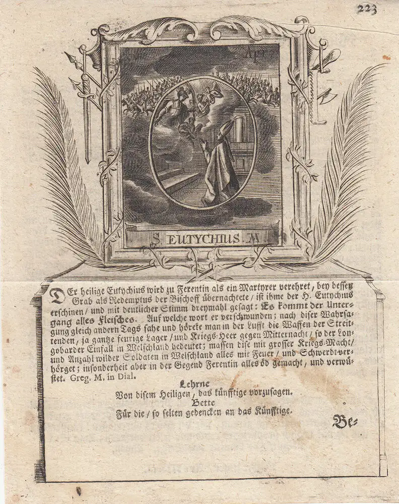 Sankt Eutychius 15. April christlicher Märtyrer Orig Kupferstich um 1750