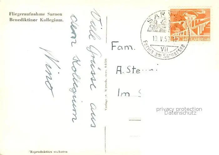 Sarnen Fliegeraufnahme Benediktiner Kollegium Sarnen postalisch gelaufen 1957 Erhaltung siehe scans [LiesaD40] LiesID40