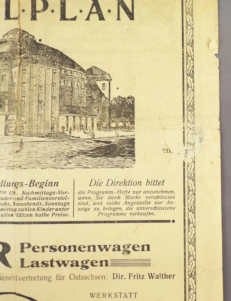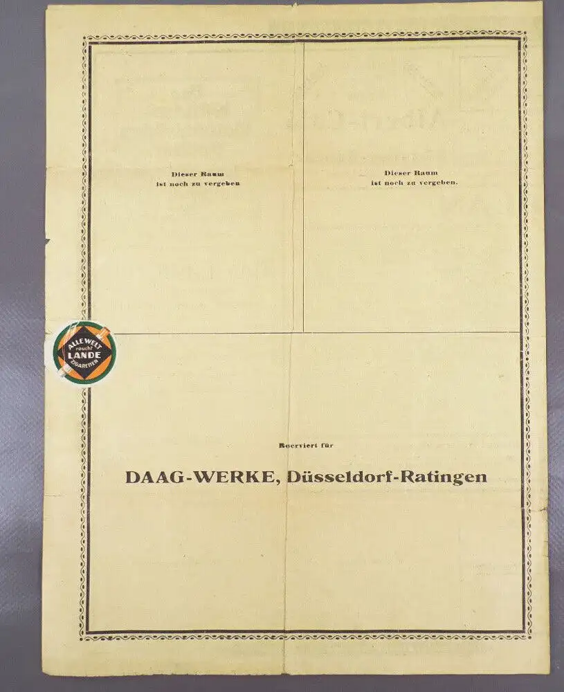 Originales Prospekt, Format etwas größer als A 4, insgesamt 4 Seiten. Alles abgebildet.Erhaltung: briefartig gefaltet, kleinere Einrisse vorhanden, Titel mit kleinen Abriss, alles weitere siehe bitte Fotos.interne Lagernummer D2