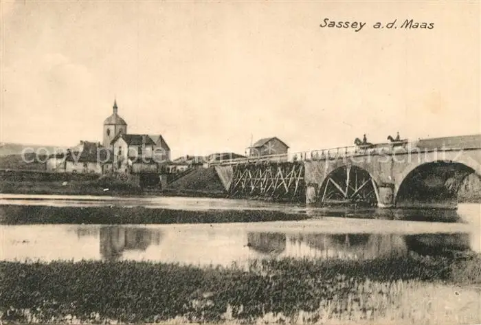 Sassey-sur-Meuse Bruecke Kirche Soldaten Pferde Sassey-sur-Meuse postalisch nicht gelaufen bis 1920 Feldpost - Stempel Erhaltung siehe scans [KathaD81] Feldpost - Stempel Kathoren