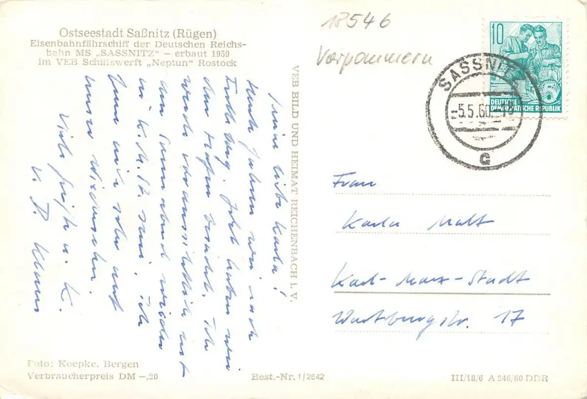 Saßnitz (Rügen) MS "SASSNITZ" gl1960 173.650