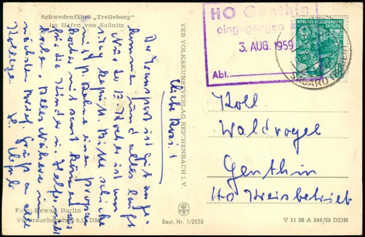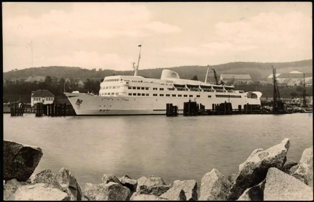 Sassnitz Schwedenfähre Trelleborg Fährschiff im Hafen DDR AK 1959