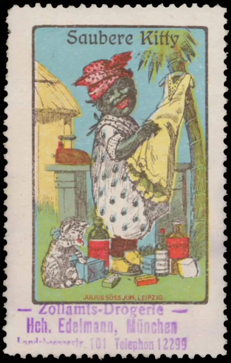 Katze, Inhaber: Hch. Edelmann, Landsbergerstraße 101, Druck: Julius Süss jun. Leipzig, Größe/Zustand: 5x3 , guter Zustand, Original alte Reklamemarke die seinerzeit für die Werbung benutzt wurde
