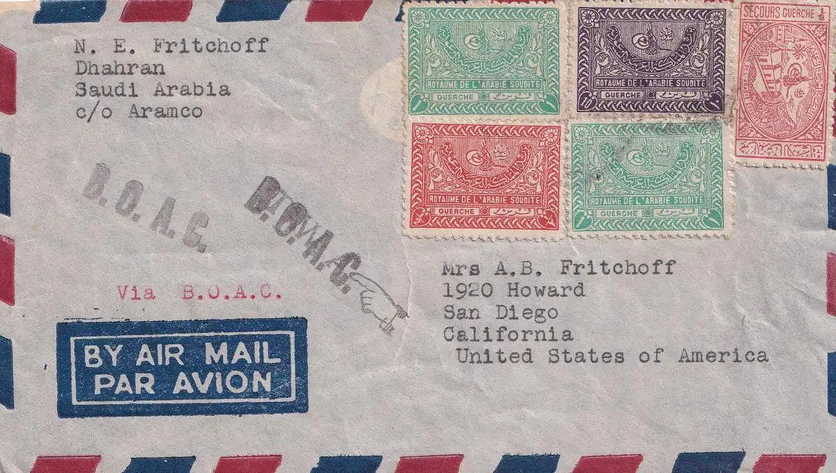 SAUDI ARABIA SAUDIARABIEN ca 1950 COVER DHARAN-SAN DIEGO/ USA