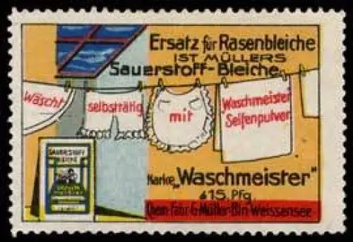 Marke: Waschmeister, Reinigung, Waschmittel, Größe/Zustand: 3x5 , guter Zustand, Original alte Reklamemarke die seinerzeit für die Werbung benutzt wurde