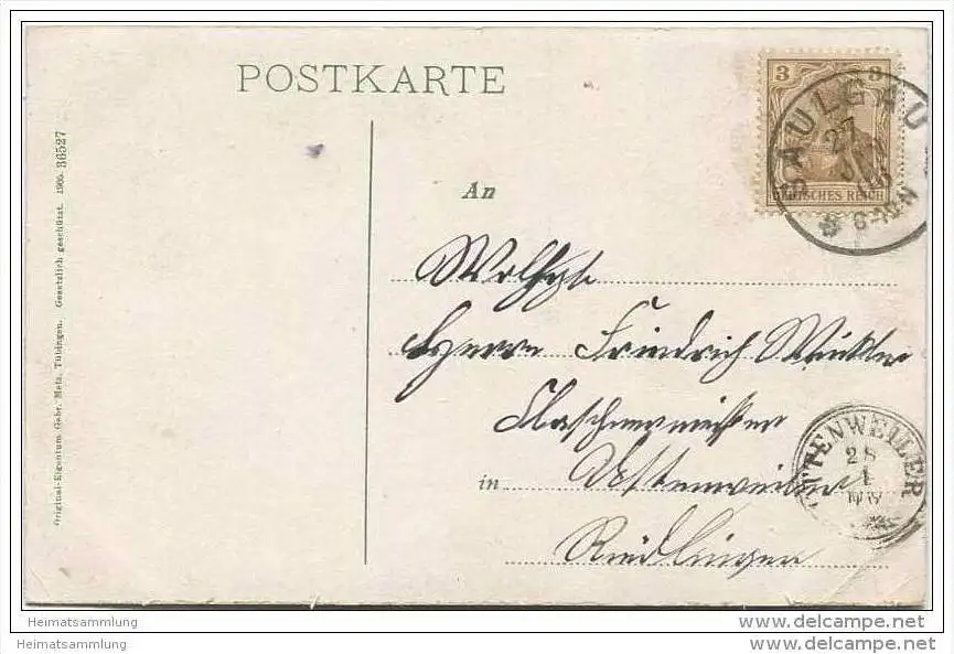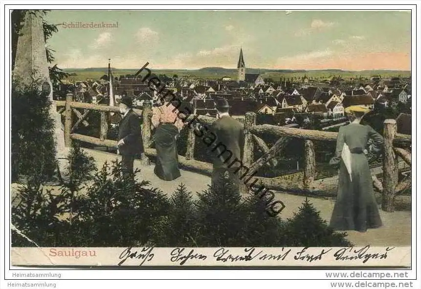 Saulgau - Schillerdenkmal - Verlag Gebr. metz Tübingen 1905 - Eckknick unten links (E7256) gel. 1906