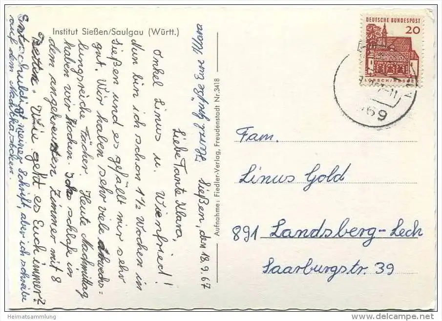 Saulgau-Sießen - Institut Sießen - Foto-AK Grossformat - Verlag Fiedler Freudenstadt (E14189) gel. 1967