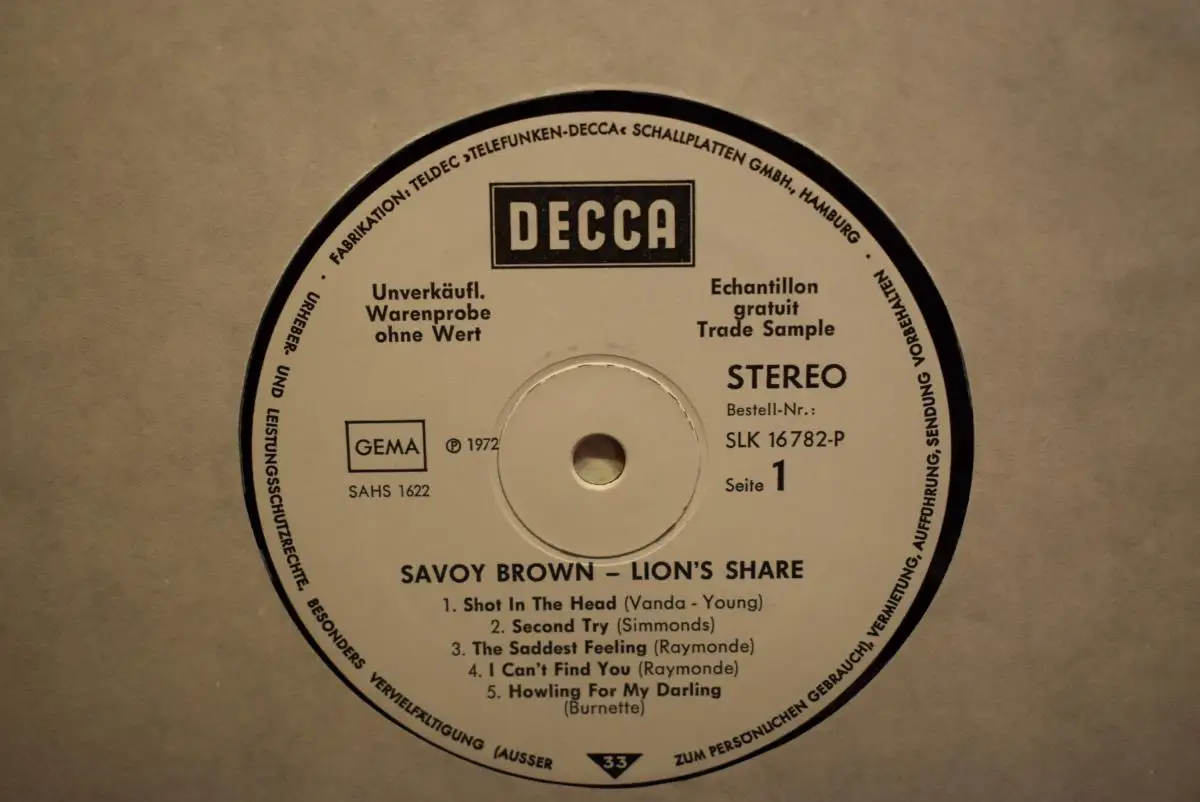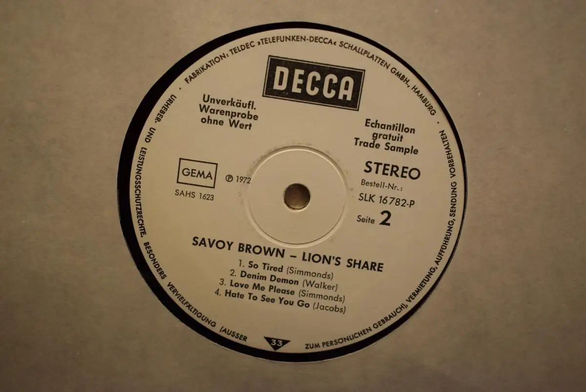 Savoy Brown ‎– Lion's Share "Seltene Decca Promo Version , Sammlerstück in Top Zustand "