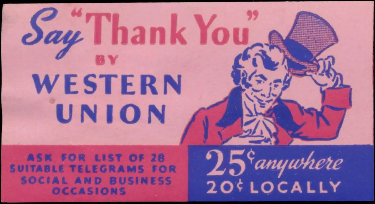 USA, Bank, Telegrafie, Größe/Zustand: 4x7 , guter Zustand, Original alte Reklamemarke die seinerzeit für die Werbung benutzt wurde