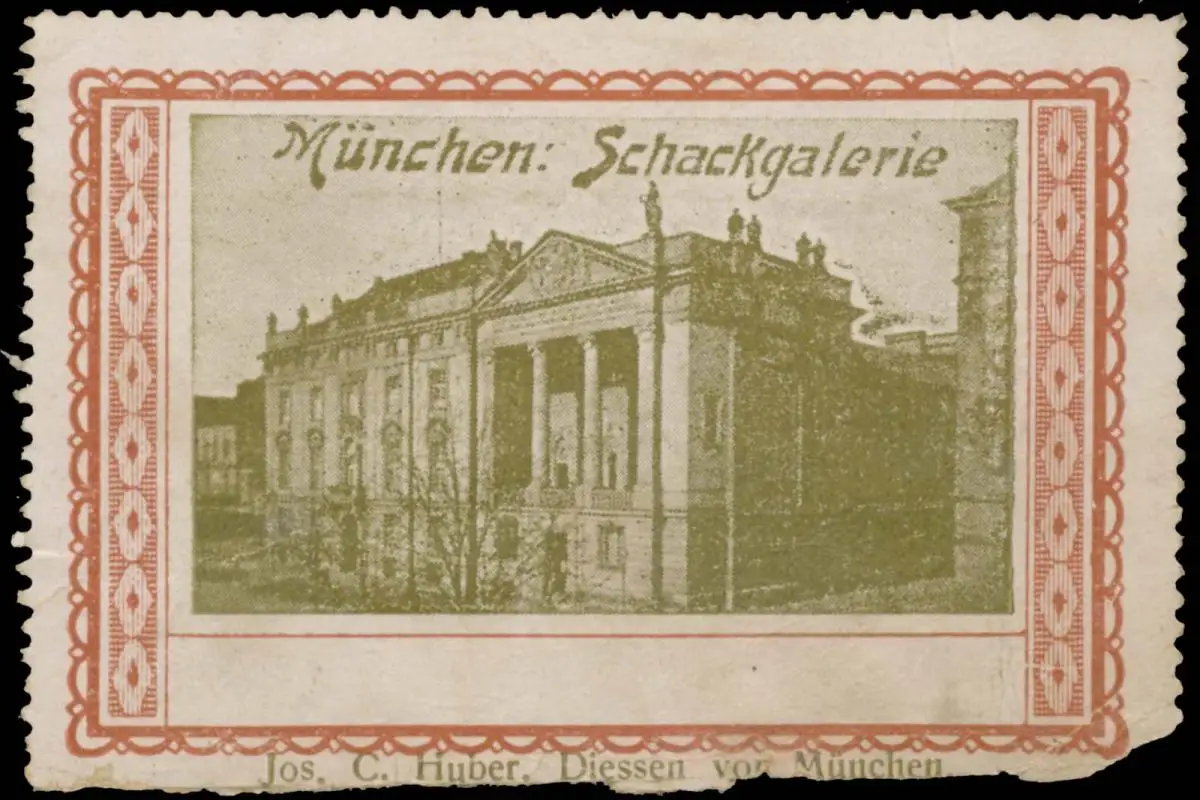 Jos. C. Huber, Diessen vor München, Größe/Zustand: 5x7 , beschädigt, Original alte Reklamemarke die seinerzeit für die Werbung benutzt wurde