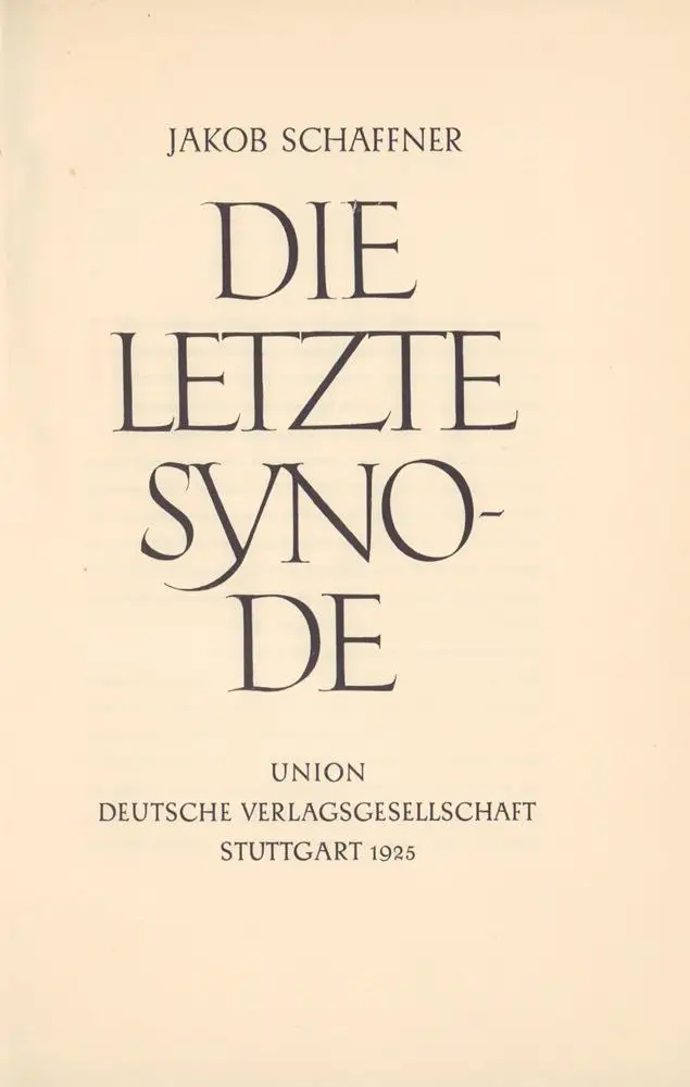 Druck der Juniperus-Presse. Nr. 39 von 204 Exemplaren der Vorzugs-Ausgabe auf Bütten (davon die ersten 200 Exemplare für den Handel bestimmt). Hergestellt in den Werkstätten der Union Deutsche Verlagsgesellschaft, Stuttgart, unter Leitung von F. H. Ernst Schneidler. - Jakob Schaffner (1875-1944), nationalsozialistisch gesinnter Schweizer Schriftsteller (NDB 22, S. 538). - Einband m. schwacher Randbräunung