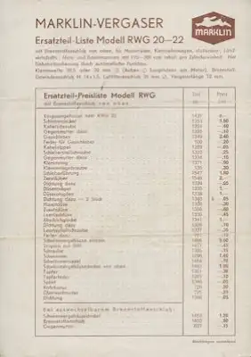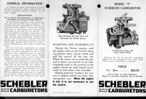 Schebler Vergaser Modell T Ersatzteilliste 5.1930