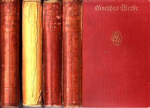 das Erscheinungsjahr ist geschätzt, diese Bücher sind ein Dachbodenfund mit teils starken Gebrauchsspuren, Seiten gebräunt Rücken kaputt, bei einem Buch fehlt der Rücken, es sind teils die Seitenblocks gelockert jedoch es sind keine Seiten lose, aus dem Inhalt: Band 1-2: 1. Teil: Gedichte. 2. Teil: Reineke Fuchs - Hermann und Dorothea - Archilleis. Band 3-5: 3. Teil: Götz von Berlichingen - Clavigo - Stella - Die Geschwister - Egmont. 4. Teil: Iphigenie auf Tauris - Torquato Tasso. 5. Teil: Faust. Band 6-8: 6. Teil: Die Leiden des jungen Werther. 7. Teil: Wilhelm Meisters Lehrjahre. 8. Teil: Die Wahlverwandtschaft. Band 9-10: 9. Teil: Dichtung und Wahrheit erstes bis zehntes Buch. 10. Teil: Dichtung und Wahrheit elftes bis zwanzigstes Buch Beschreibung vom Antiquariat Ardelt 3h5b Antiquariat Ardelt