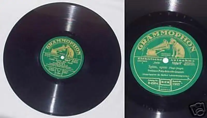 Grammophon Bestell-Nr. 23027 von 1929 Durchmesser 25 cm Professor-Felix-Schmidt-Quartett (Doppelquartett des Berliner Lehrer-Gesangverein): "Guten Abend, gute Nacht" (Wiegenlied) und "Spinn, spinn" (Hugo Jüngst) guter Zustand, siehe Bild