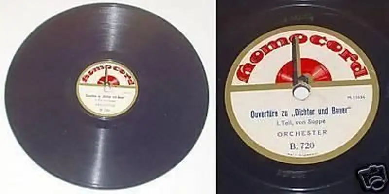 Homocord Nr. B 720 Durchmesser 25 cm "Ouvertüre zu Dichter und Bauer" I. und II. Teil, von Suppé Orchester guter Zustand (geringe Altersspuren), siehe Bild