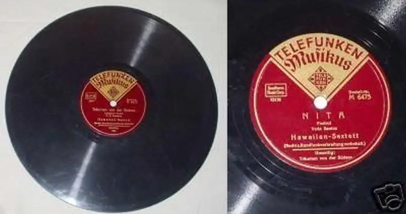 Durchmesser 25 cm "Träumen von der Südsee" langsamer Foxtrott und "NITA" Foxtrott, Hawaiian-Sextett normale Altersspuren (etwas zerkratzt), siehe Bild