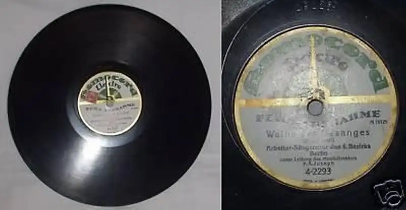Durchmesser 25,5 cm Homocord Nr. 4-2293 "Weihe des Gesanges" (W.A. Mozart) und "Empor zum Licht!" (G.Ad. Uthmann) Arbeiter-Sängerchor des 6. Bezirks Berlin guter Zustand (geringe Altersspuren), siehe Bild