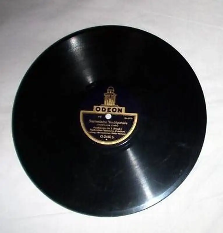Durchmesser 25 cm Odeon Nr. O-2440 "Heinzelmännchens Wachtparade" Charakterstück und "Siamesische Wachtparade" Charakterstück Musikkoprs der 3. (Preuß.) Nachrichten-Abteilung, Potsdam guter Zustand, leichte Altersspuren, siehe Bild