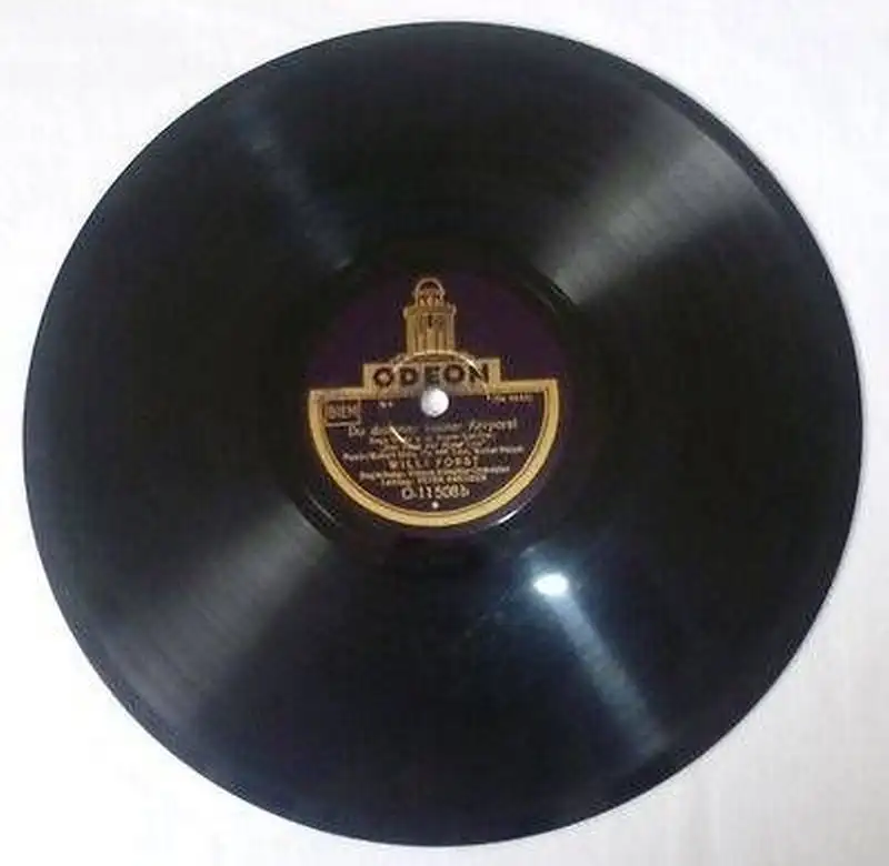 Durchmesser 25 cm Odeon Nr. O-11508 "Warum lächelst du, Mona Lisa?" (Engl. Waltz) und "Du dummer kleiner Korporal" (Engl. Waltz) beide aus dem Tonfilm >Der Raub der Mona Lisa< Willi Forst, Begleitung Odeon-Künstler-Orchester guter Zustand, leichte Altersspuren, siehe Bild