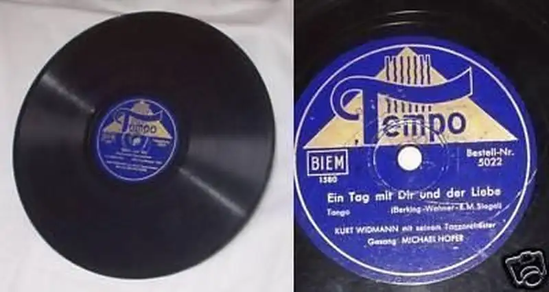Durchmesser 25 cm Tempo Nr. 5022 "Stern von Rio" (Brasilianische Tangoserenade) und "Ein Tag mit Dir und der Liebe" (Tango) Kurt Widmann mit seinem Tanzorchester guter Zustand (leichte Altersspuren), siehe Bild