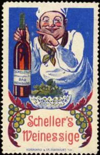 W. Scheller & Co. Weinessigfabrik, Bad Homburg, Größe/Zustand: 6x4 , guter Zustand, Original alte Reklamemarke die seinerzeit für die Werbung benutzt wurde