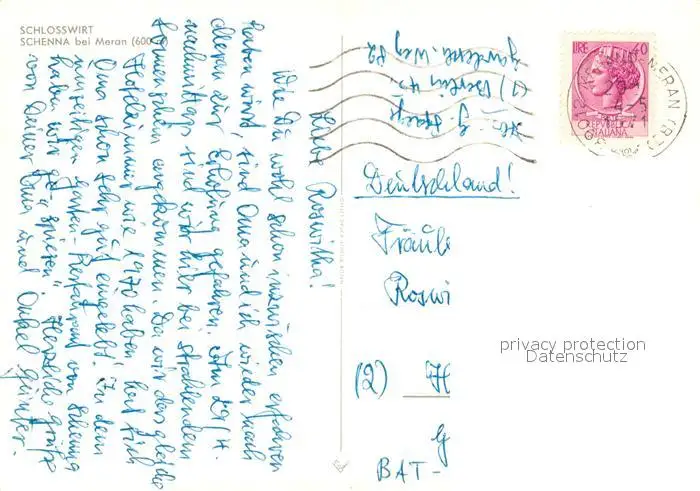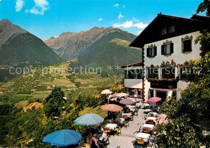 Schenna_Meran Schlosswirt Terrasse Schenna Meran postalisch gelaufen 1971 Erhaltung siehe scans [WerneD78] WernPID7