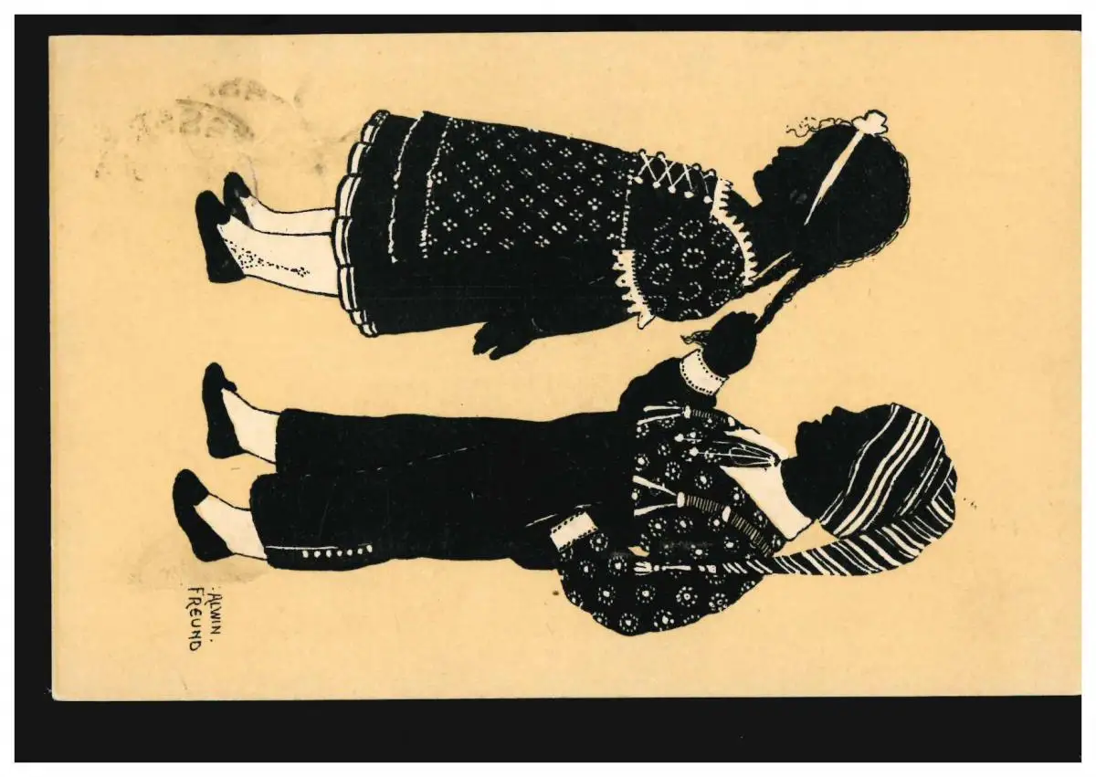 Scherenschnitt-AK Alwin Freund: Haare ziehen, Feldpost ESSEN 21.1.1918