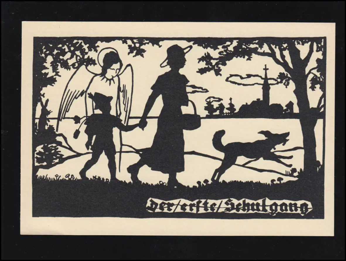 Scherenschnitt-AK Die Mutter: Der erste Schulgang, ungebraucht