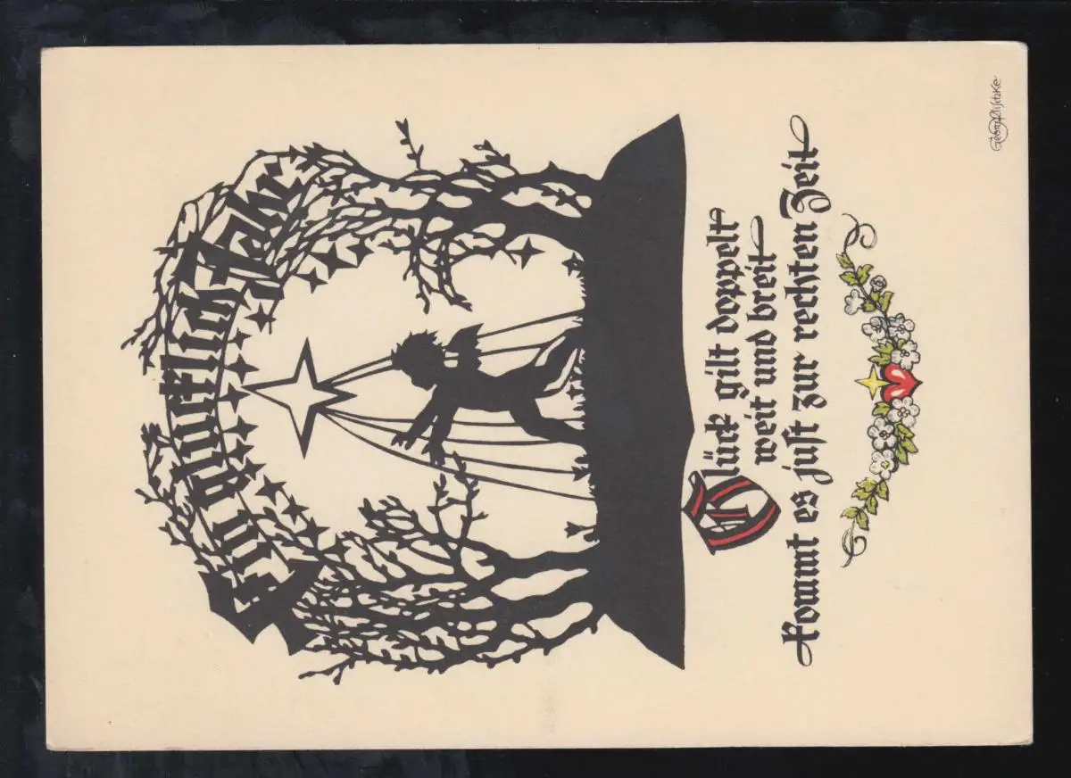 Scherenschnitt-AK Georg Plischke: Neujahr - Engel und Stern, ungebraucht
