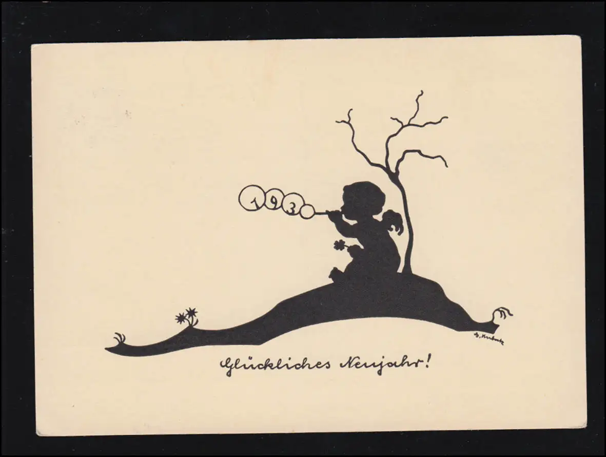 Scherenschnitt-AK Kubatz: Neujahr - Engel macht Seifenblasen, ERFURT 1935