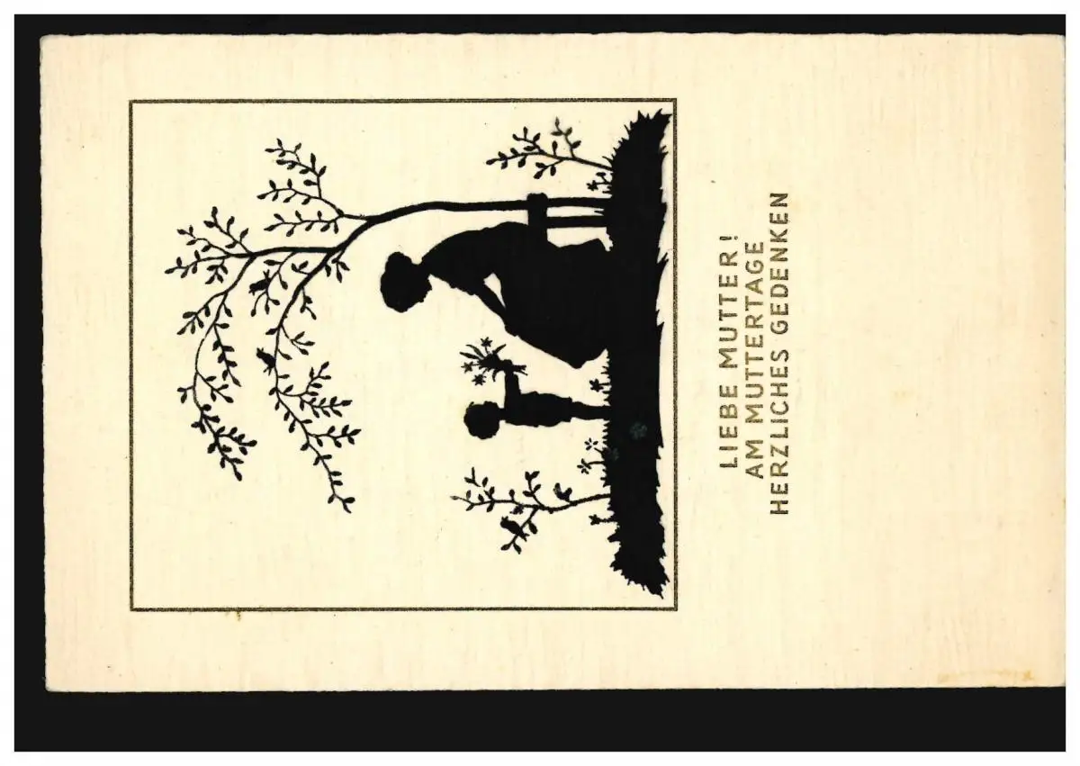 Scherenschnitt-AK Zum Muttertag Junge übergibt Blumenstrauß, ungebraucht