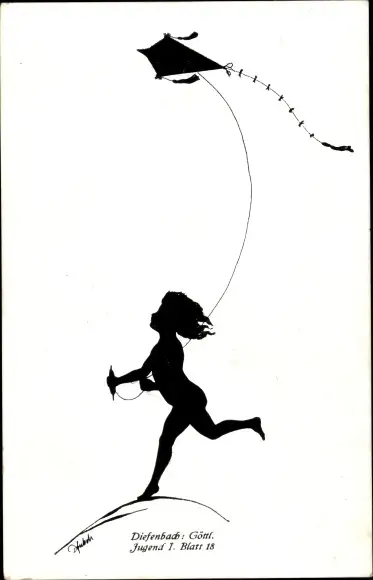Scherenschnitt Ak Diefenbach, Göttliche Jugend 1, Teilbild 18, Flugdrachen