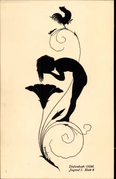 Scherenschnitt Ak Diefenbach, Göttliche Jugend 1, Teilbild 3, Hahn