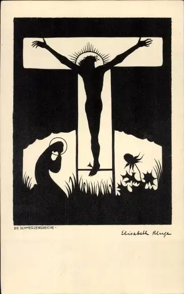 Scherenschnitt Ak Elisabeth Kluge, Schmerzensreiche, Jesus, Maria