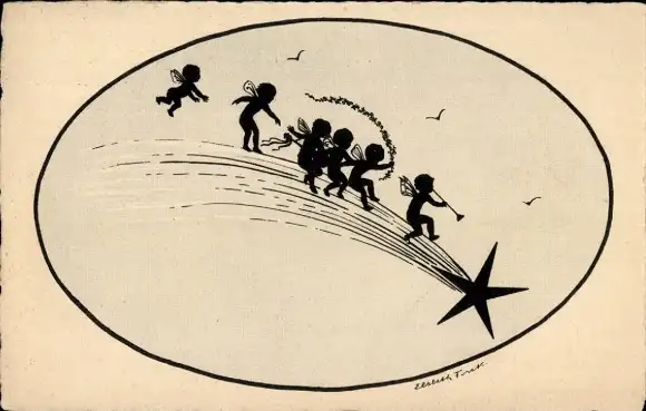 Scherenschnitt Ak Forck, Elsbeth, Elfen, Sternschnuppe