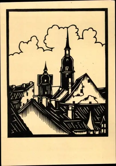 Scherenschnitt Ak Freiberg in Sachsen, Blick zur Petrikirche