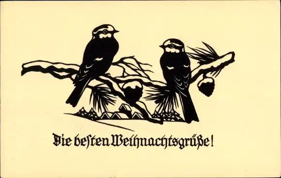 Scherenschnitt Ak Glückwunsch Weihnachten, Vögel, Tannenzapfen