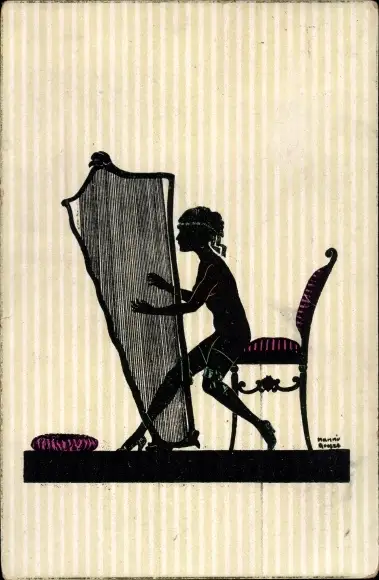 Scherenschnitt Ak Grosze, Manni, Harfe