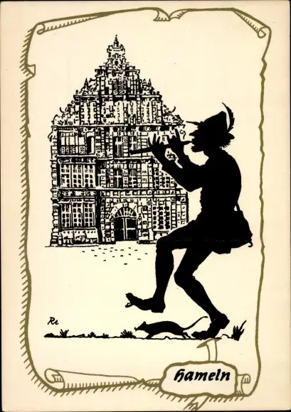 Scherenschnitt Ak Hameln an der Weser Niedersachsen, Rattenfänger von Hameln, Märchen