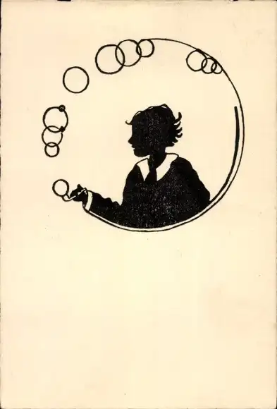 Scherenschnitt Ak Kind macht Seifenblasen