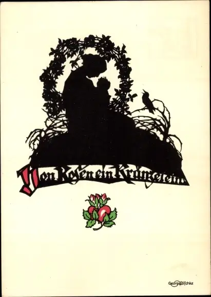 Scherenschnitt Ak Plischke, Georg, Den Rosen ein Kränzelein