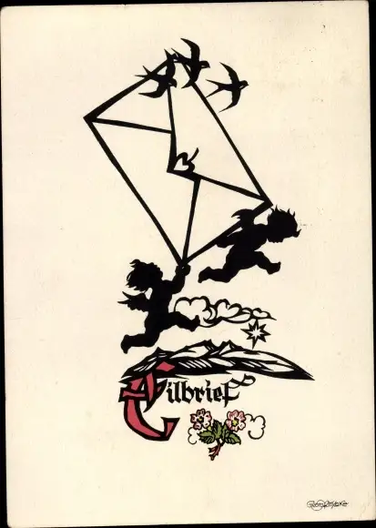 Scherenschnitt Ak Plischke, Georg, Eilbrief, Engel, Schwalben, Nr. 709