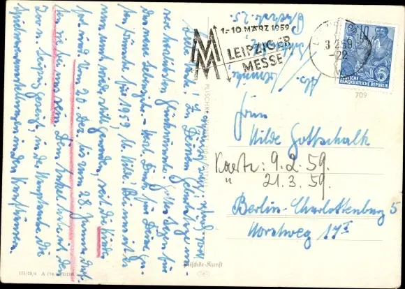 Zustand, siehe Scan, gelaufen, 1959 - ca 11 cm X 15 cm