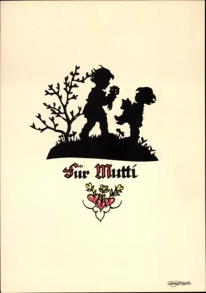 Scherenschnitt Ak Plischke, Georg, Glückwunsch Muttertag, Kinder, Blumen