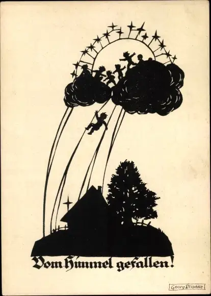 Scherenschnitt Ak Plischke, Georg, Vom Himmel gefallen, Kinder